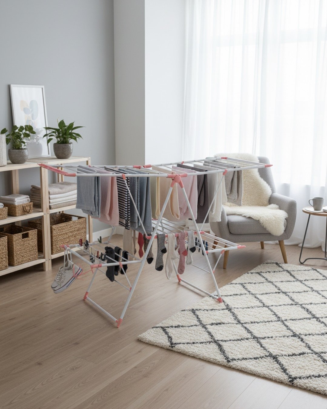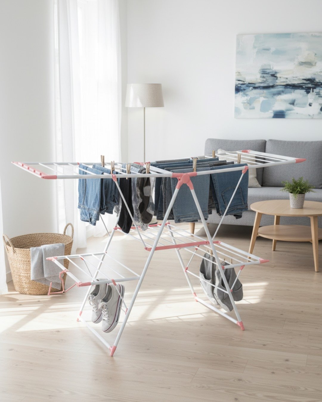 מתלה כביסה מהודר מתקפל + קולב ייבוש לנעליים – פתרון ייבוש חכם לבית