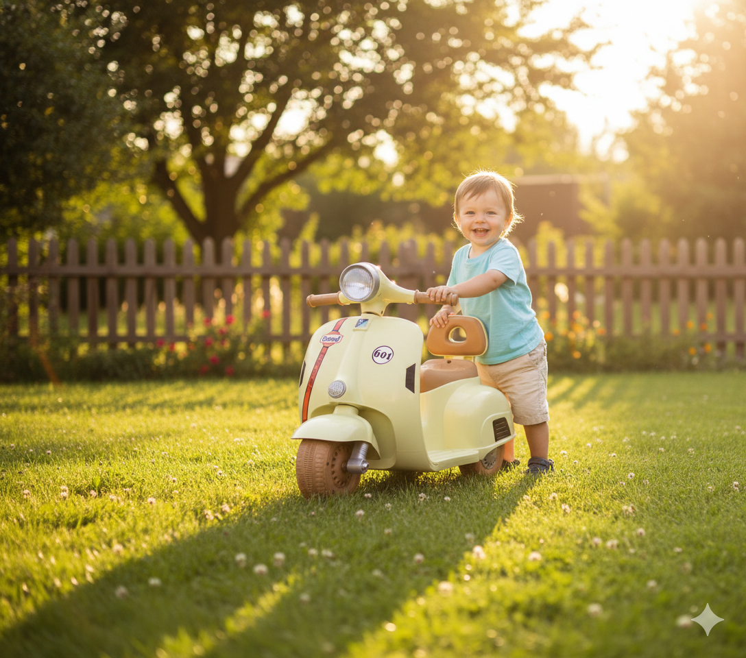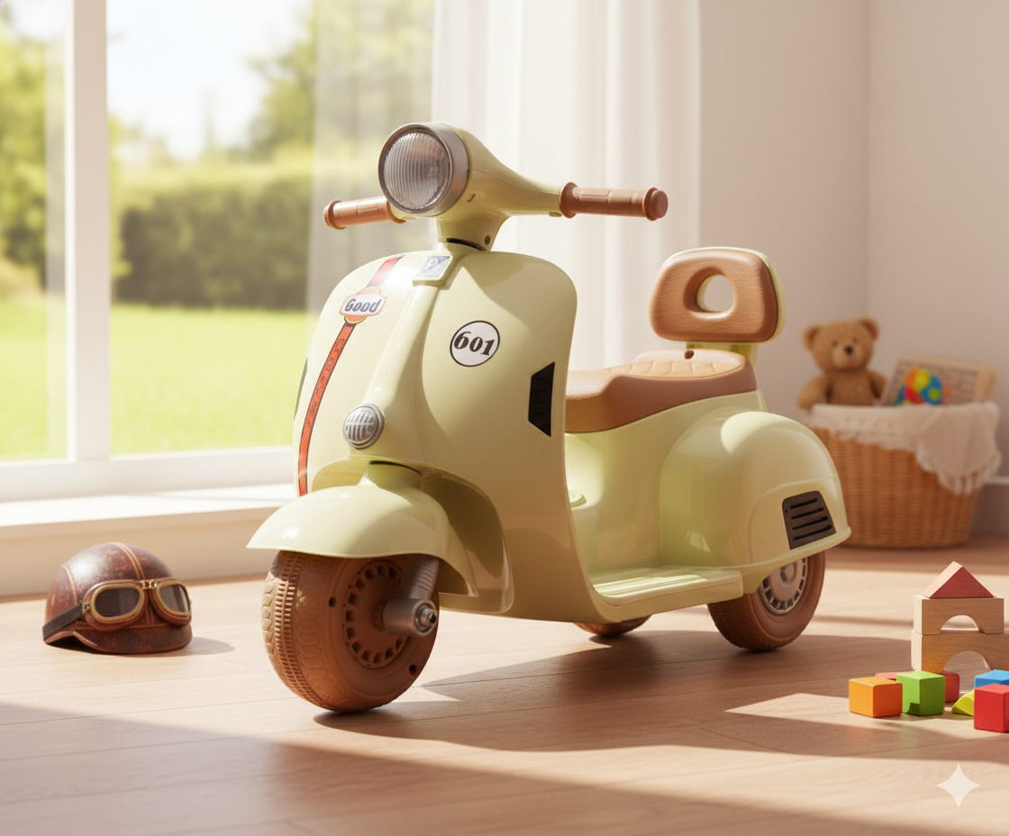 אופנוע ווספה חשמלית לילדים 6V – דגם רטרו פיסטוק