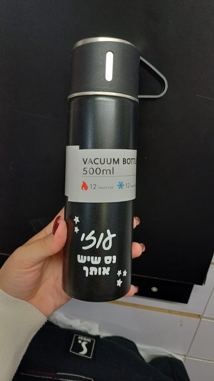 בקבוק תרמוס איכותי עם 3 כוסות ודופן כפולה לשמירה על חום/קור המשקה