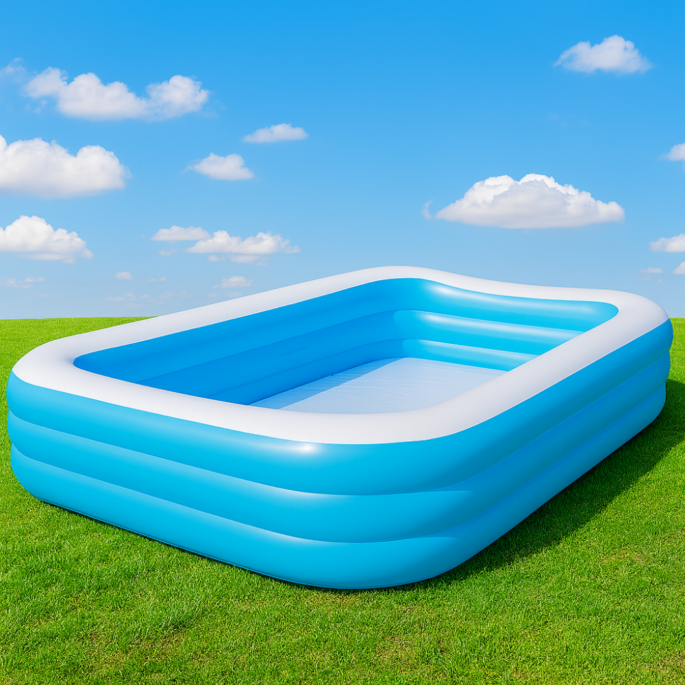 בריכה מתנפחת בעיצוב מלבני, בגודל אידיאלי של 2.01×1.50 מטר – פתרון מושלם לבילוי קיצי עם הילדים בגינה או במרפסת!