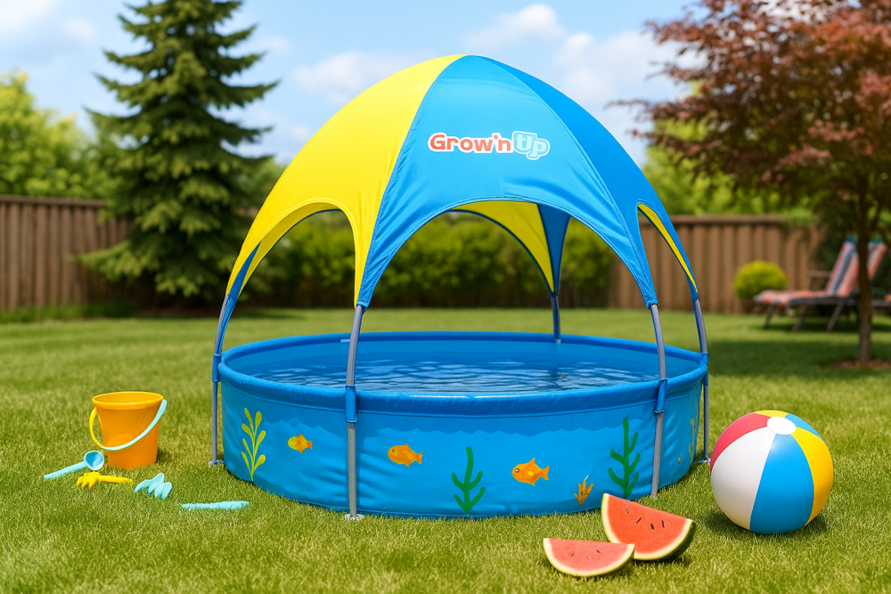 מתאימה לילדים קטנים, לפעוטות ולמשחקי מים בגינה או בחצר. קלה להרכבה, עמידה במיוחד, והכי חשוב – שומרת על הילדים מוצלים ונהנים.