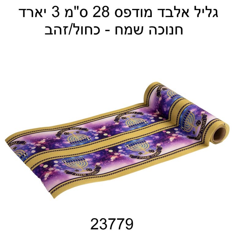 גליל אלבד מודפס 28 ס"מ 3 יארד-חנוכה שמח – כחול/זהב