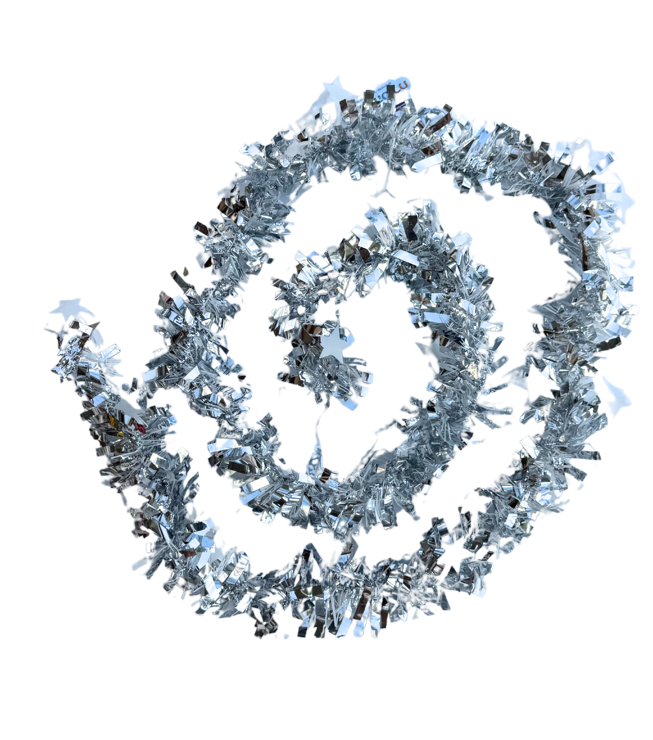 גרילנדה לעיצוב וקישוט בצבע כסף עם עיטורי כוכב