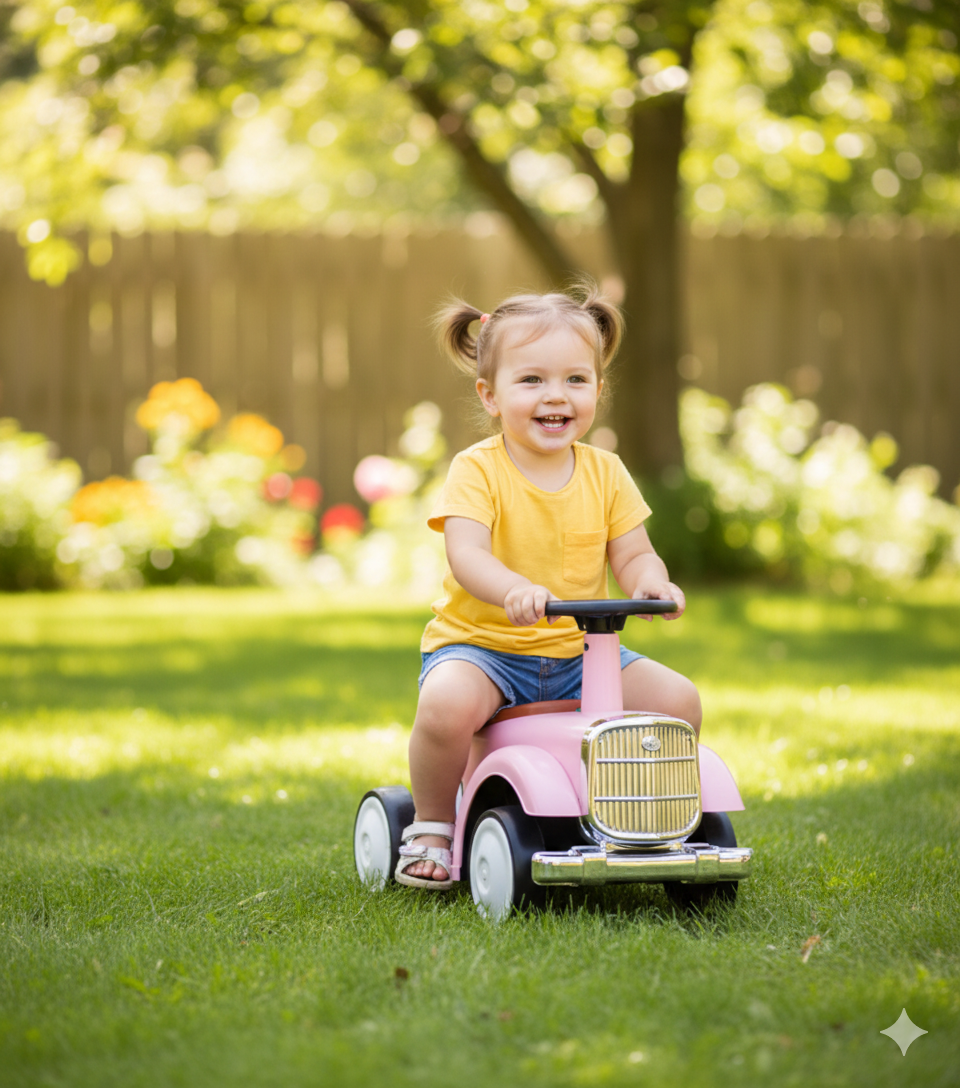 ווספה חשמלית לילדים בצבע ורוד קלאסי המעניק מראה רטרו נקי, יוקרתי ומודרני כאחד.