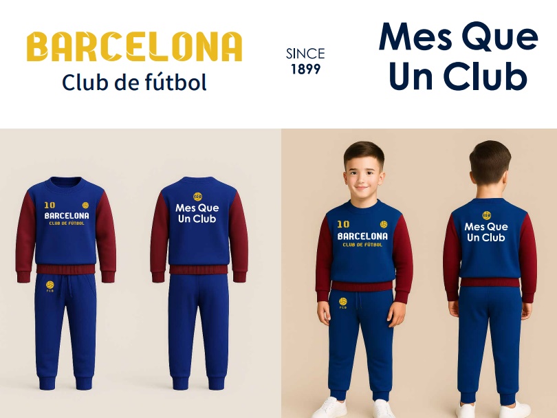 חליפת כדורגל לילדים בעיצוב Barcelona-ברצלונה עם מראה ספורטיבי בולט ונוכחות של כוכב.