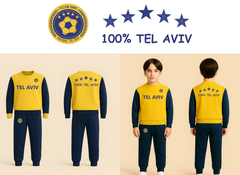חליפת כדורגל פוטר מכבי תל אביב Tel Aviv עם מראה ספורטיבי בולט ונוכחות של כוכב.