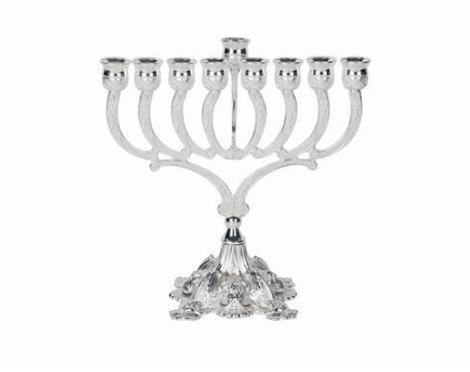 עם חנוכייה איכותית, מפוארת ומעוצבת בצבע כסף.
