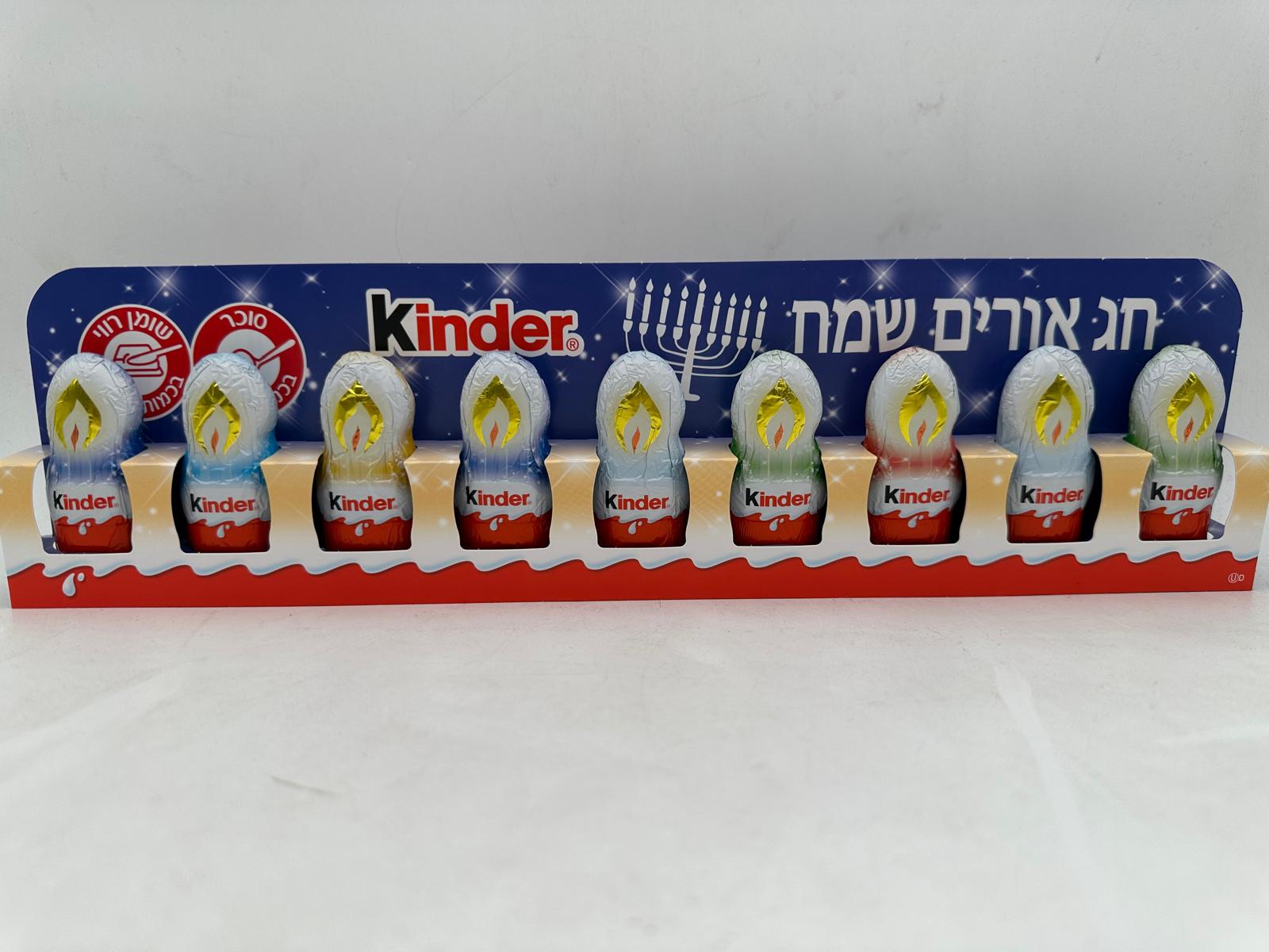 את המוצרים של קינדר לחנוכה 2024 מובילה חנוכייה חגיגית המורכבת מ-9 שוקולדים של קינדר בצורת נרות דולקים, אחד לכל יום של החג.