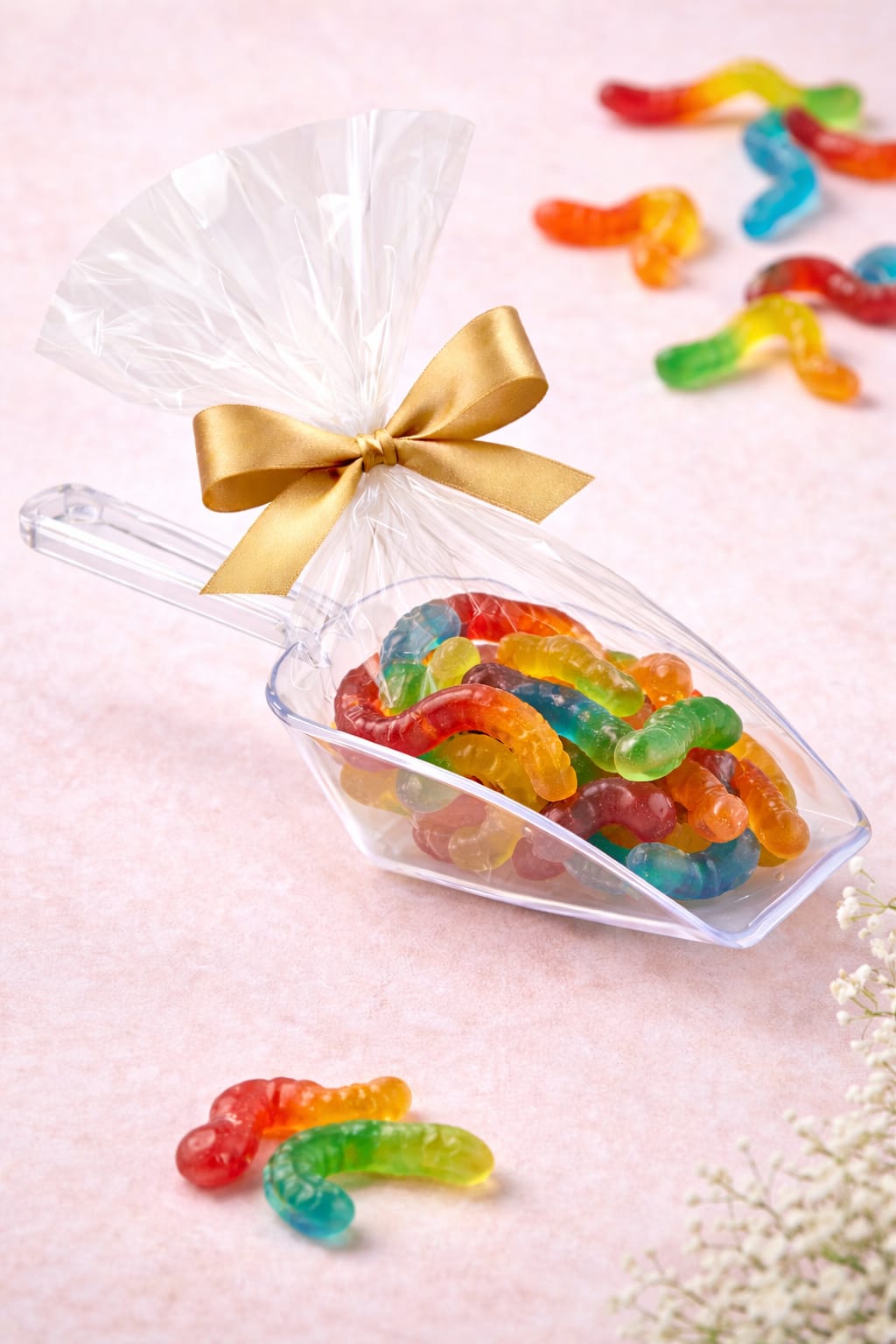 כף שקופה עם גומי  ארוזה בצלופן ופפיון