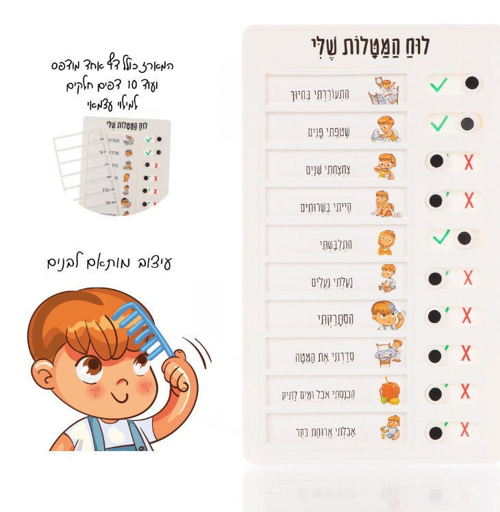 העיצוב הצבעוני והידידותי במיוחד לבנים הופך את ניהול המשימות למשחק חינוכי, מתאים לבית, לחדר הילדים ולשימוש יומיומי עם ההורים. פתרון מצוין ללמידת סדר יום, חיזוק משמעת עצמית והעצמת תחושת ההישג.
