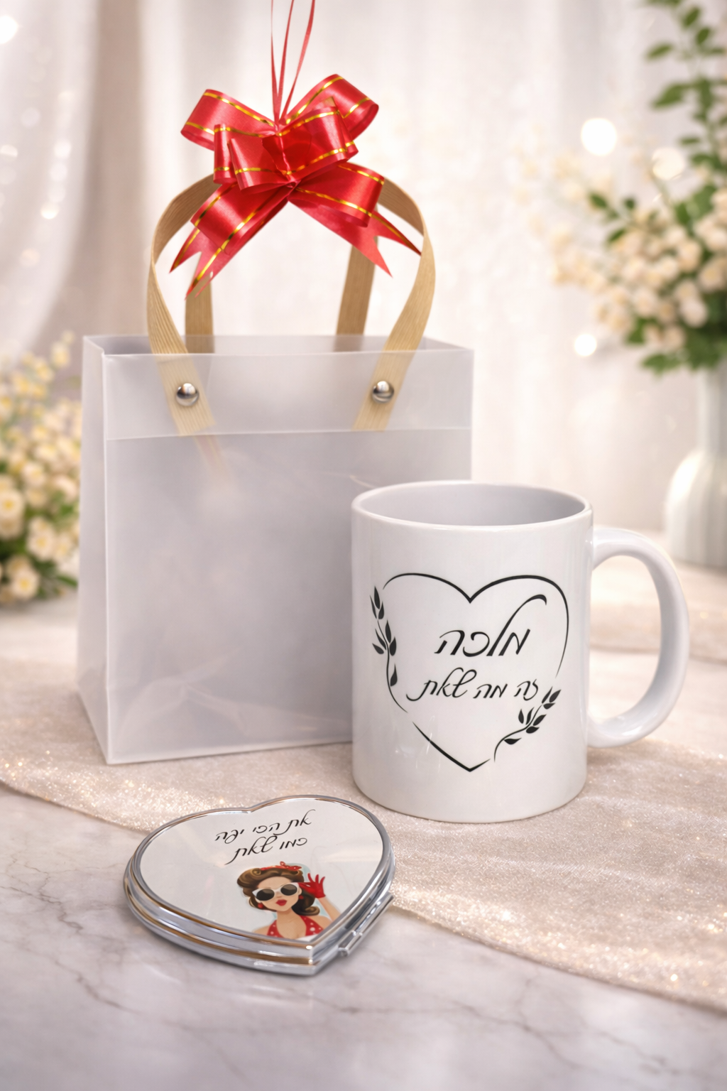 מארז מהלב – כוס אישית ומראת לב