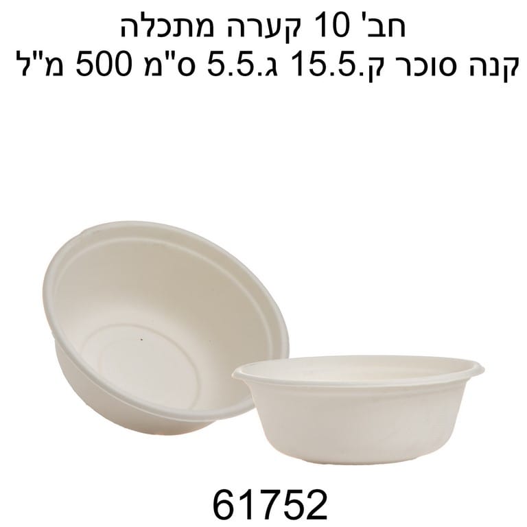 מארז 10 קערות מתכלה מקנה סוכר עם מכסה – 500 מ״ל