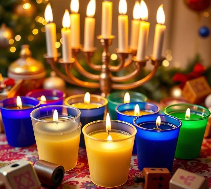 סט של כוסיות נרות חנוכה מוכנות להדלקה,
