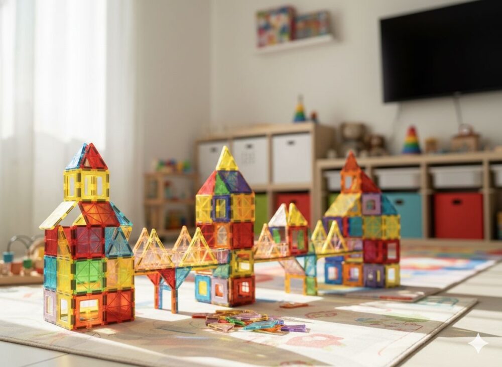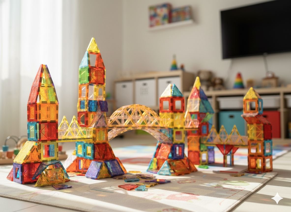 ערכת בנייה מגנטית – 100 חלקים צבעוניים, מחברים ויוצרים אינסוף צורות!