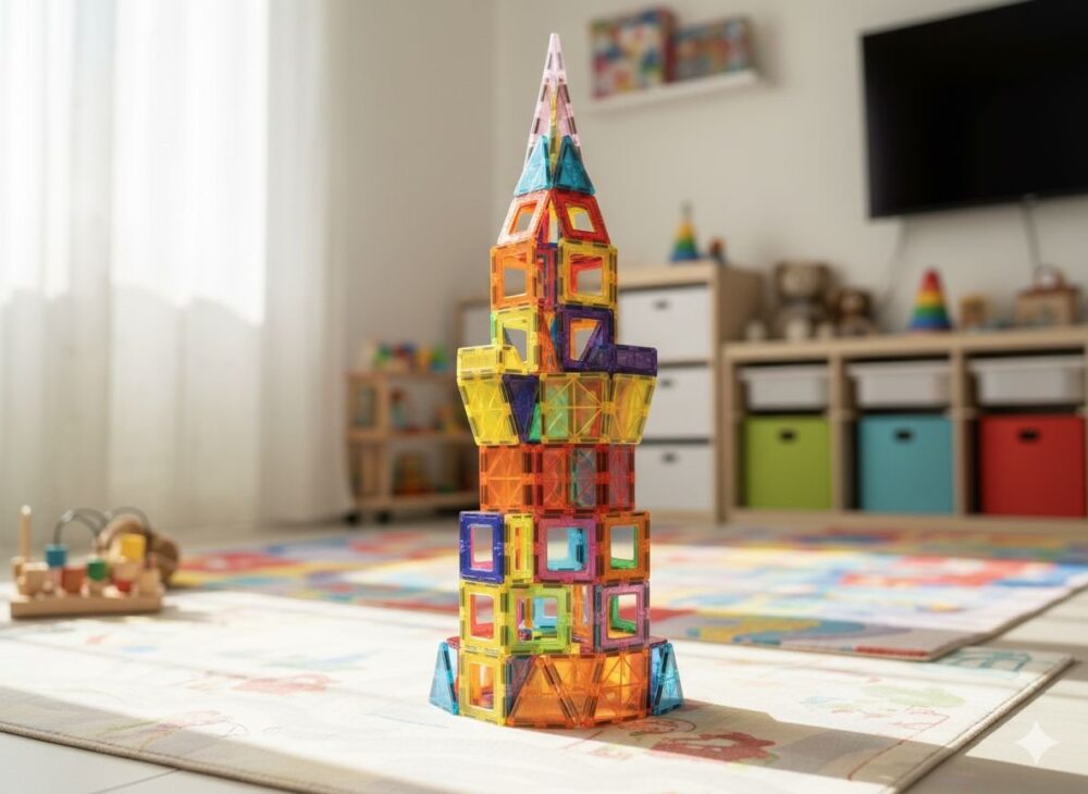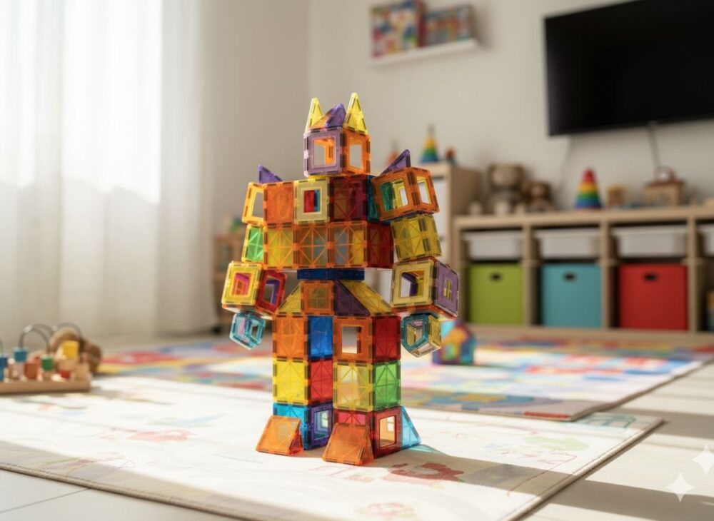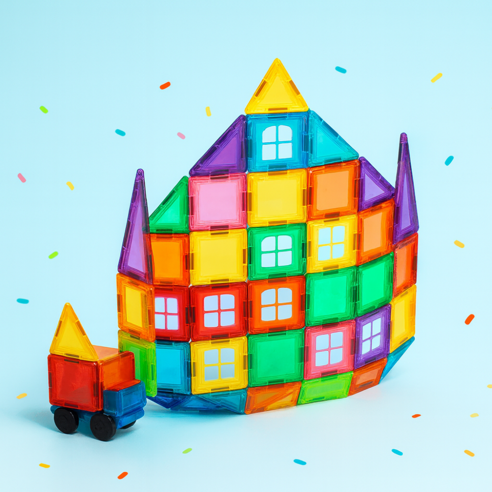 ערכת בנייה מגנטית גדולה במיוחד הכוללת 100 חלקים צבעוניים ואיכותיים המתחברים זה לזה בקלות באמצעות מגנטים חזקים. מאפשרת לילדים (ולמבוגרים!) לבנות מבנים, רכבים, בתים, צורות גיאומטריות ותלת ממדיות מרהיבות. החלקים צבעוניים ושקופים בעיצוב מושך ומותאם לידיים קטנות, מפתחים יצירתיות, מוטוריקה עדינה, חשיבה מרחבית וכישורים הנדסיים. אידיאלי למשחק עצמאי או קבוצתי, מתאים לבית ולגן – מגיע באריזה צבעונית ומהודרת עם רעיונות להרכבה.