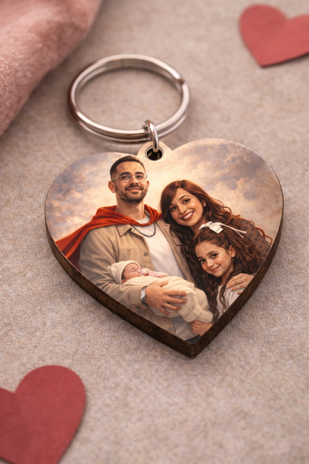 מחזיק מפתחות מעוצב בצורת לב, עשוי עץ טבעי איכותי, עם ציפוי מיוחד להדפסת סובלימציה – מושלם להנצחת רגעים מרגשים ולהפיכת כל תמונה למזכרת יומיומית עם ערך רגשי.