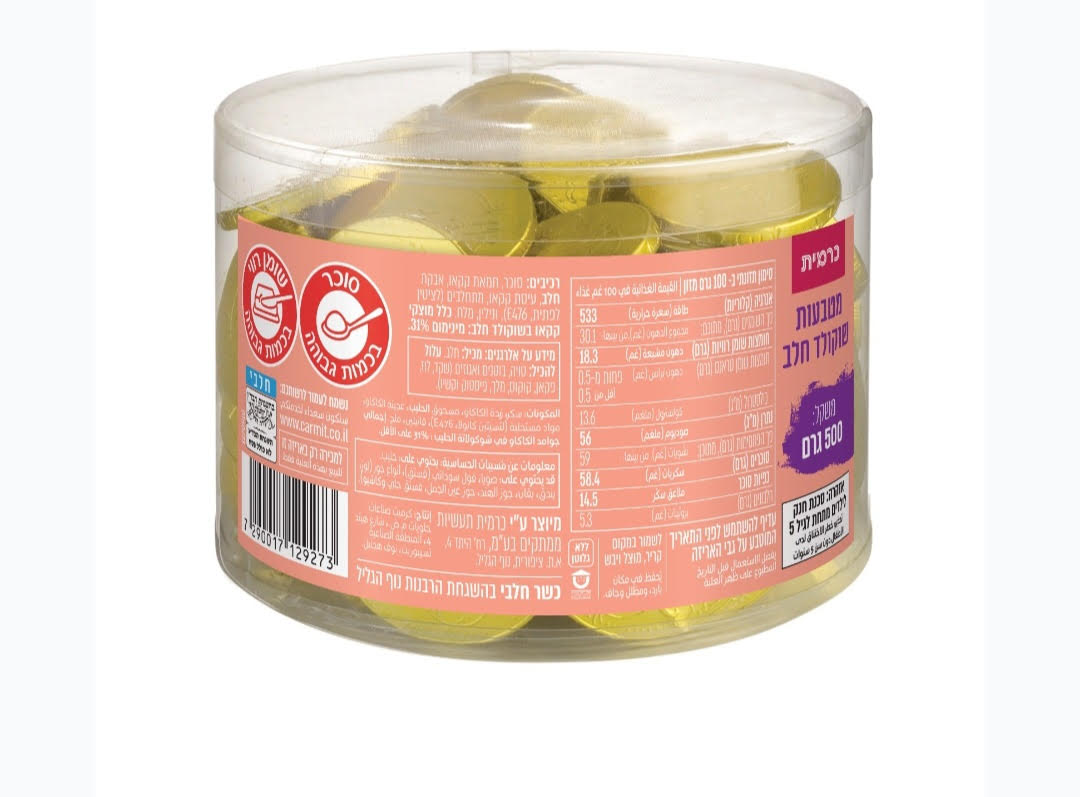 מטבעות שוקולד חלב כרמית 500 גרם בד"צ