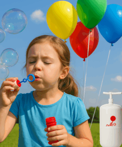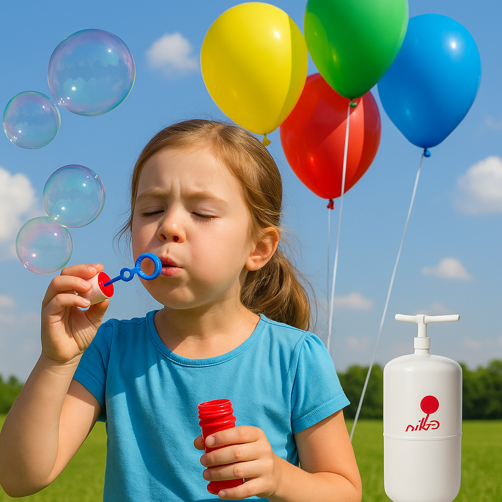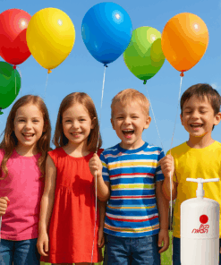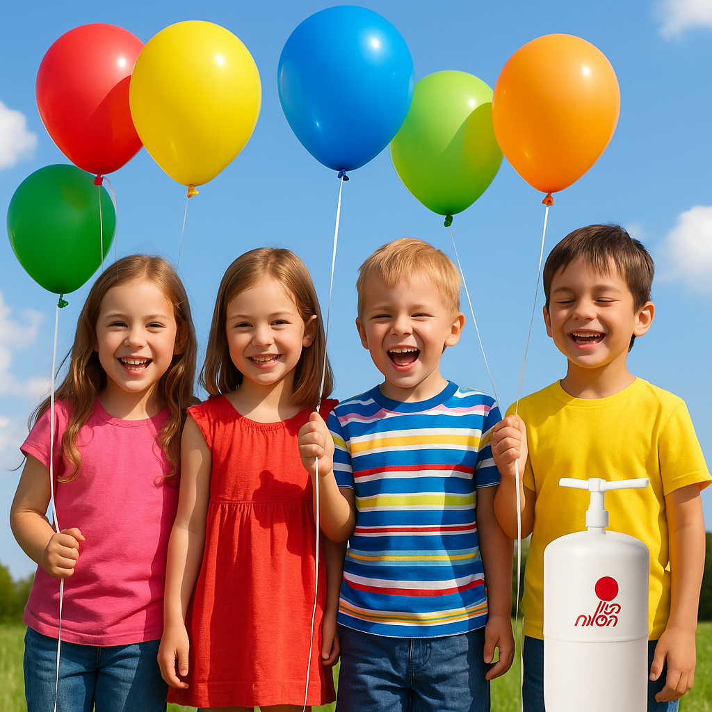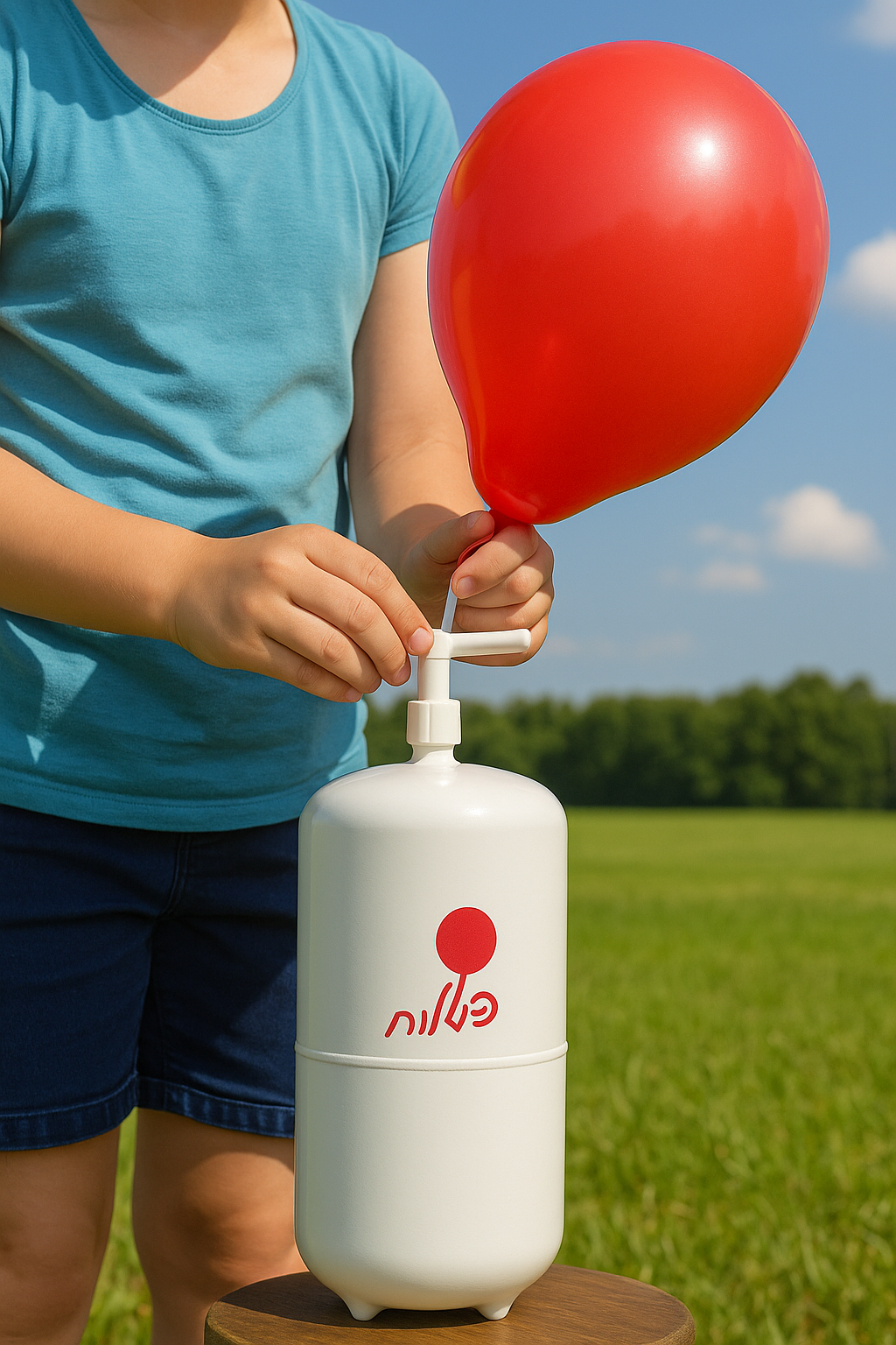 מיכל הליום חד פעמי לניפוח עד 50 בלונים. נוח, בטוח, וללא צורך בהחזרה.