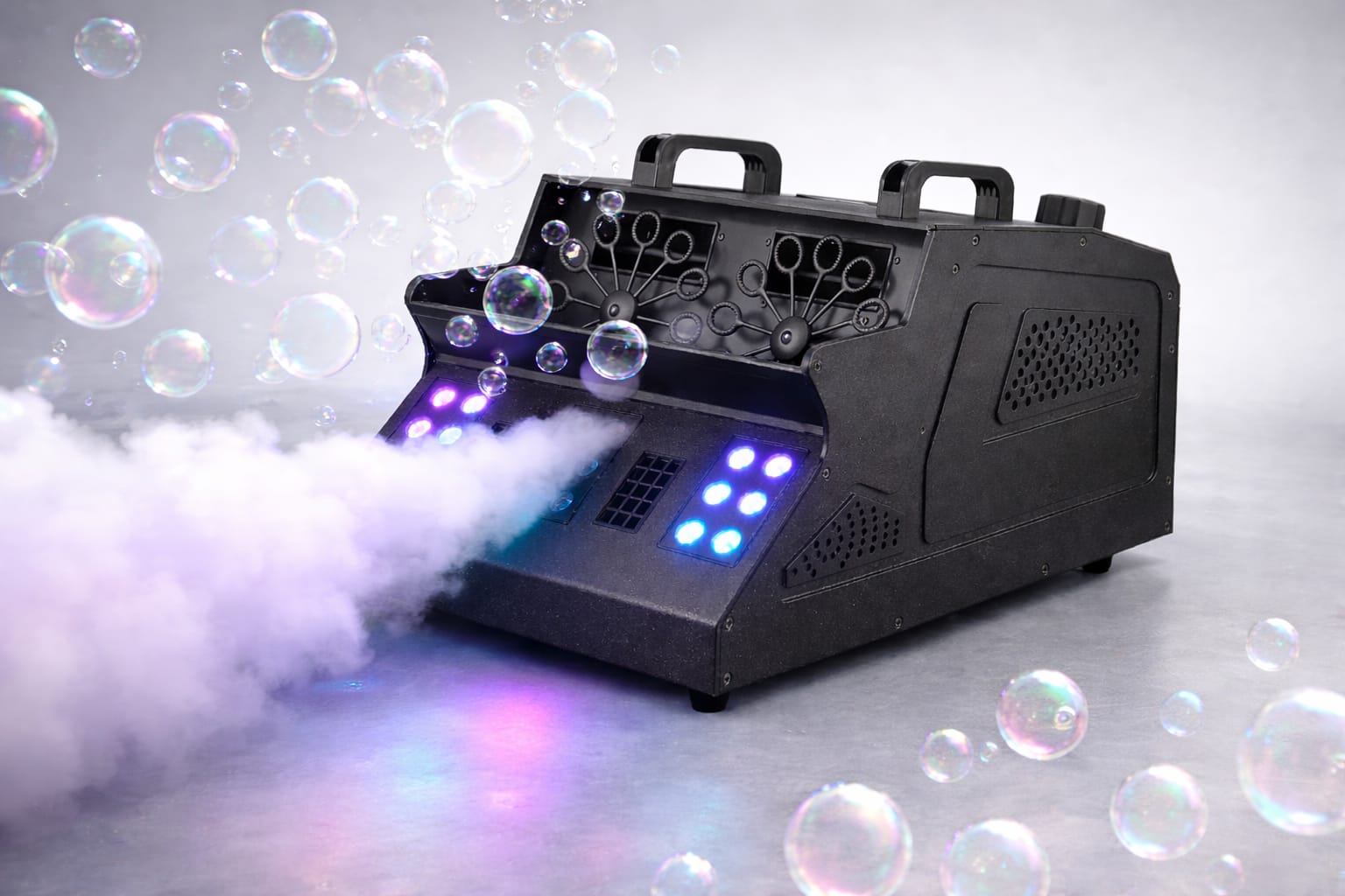 מכונת אפקטים מקצועית המשלבת בועות סבון, עשן ותאורת LED עוצמתית – ליצירת אווירת מסיבה מרשימה תוך שניות.