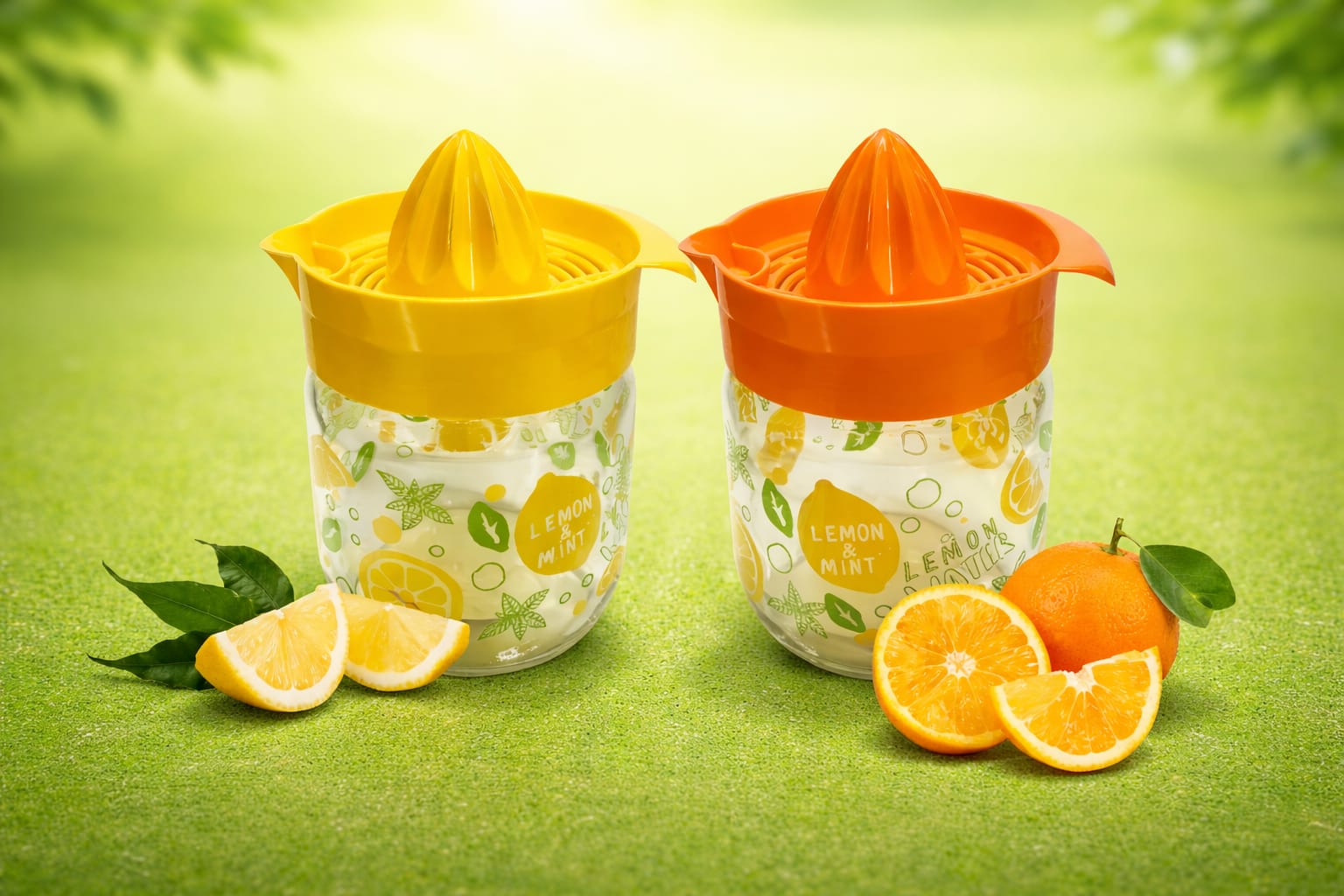 מסחטת הדרים ידנית עם צנצנת זכוכית – סחיטה קלה, עיצוב שמח ונוחות יומיומית במטבח.