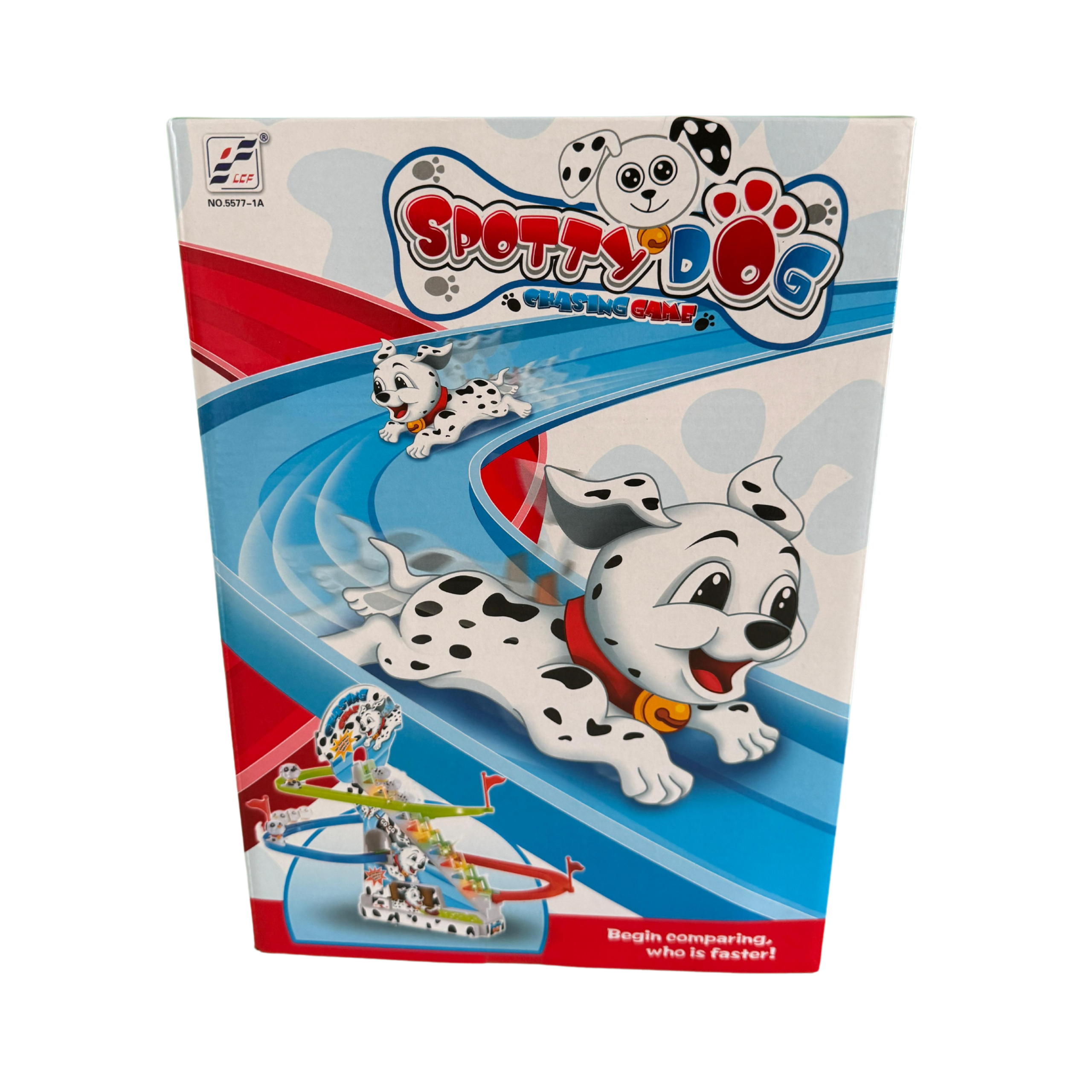 מסלול מירוץ ומדרגות חשמלי כלבים עם אורות ומוזיקה