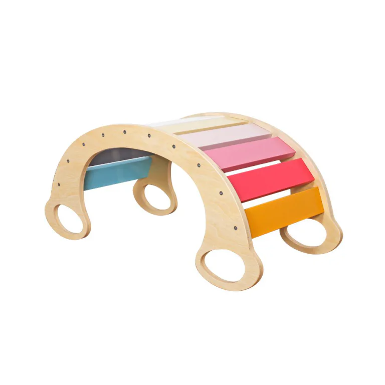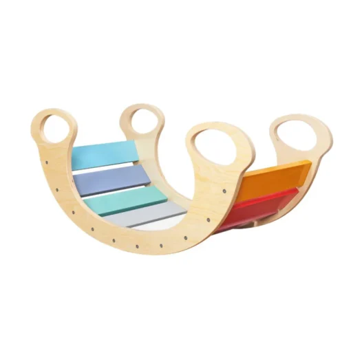 נדנדת איזון מעץ לפעוטות – מתהפכת לגשר, טיפוס או מדרגות. מפתחת קואורדינציה ושיווי משקל. מידות: 78.8×39×37 ס"מ.