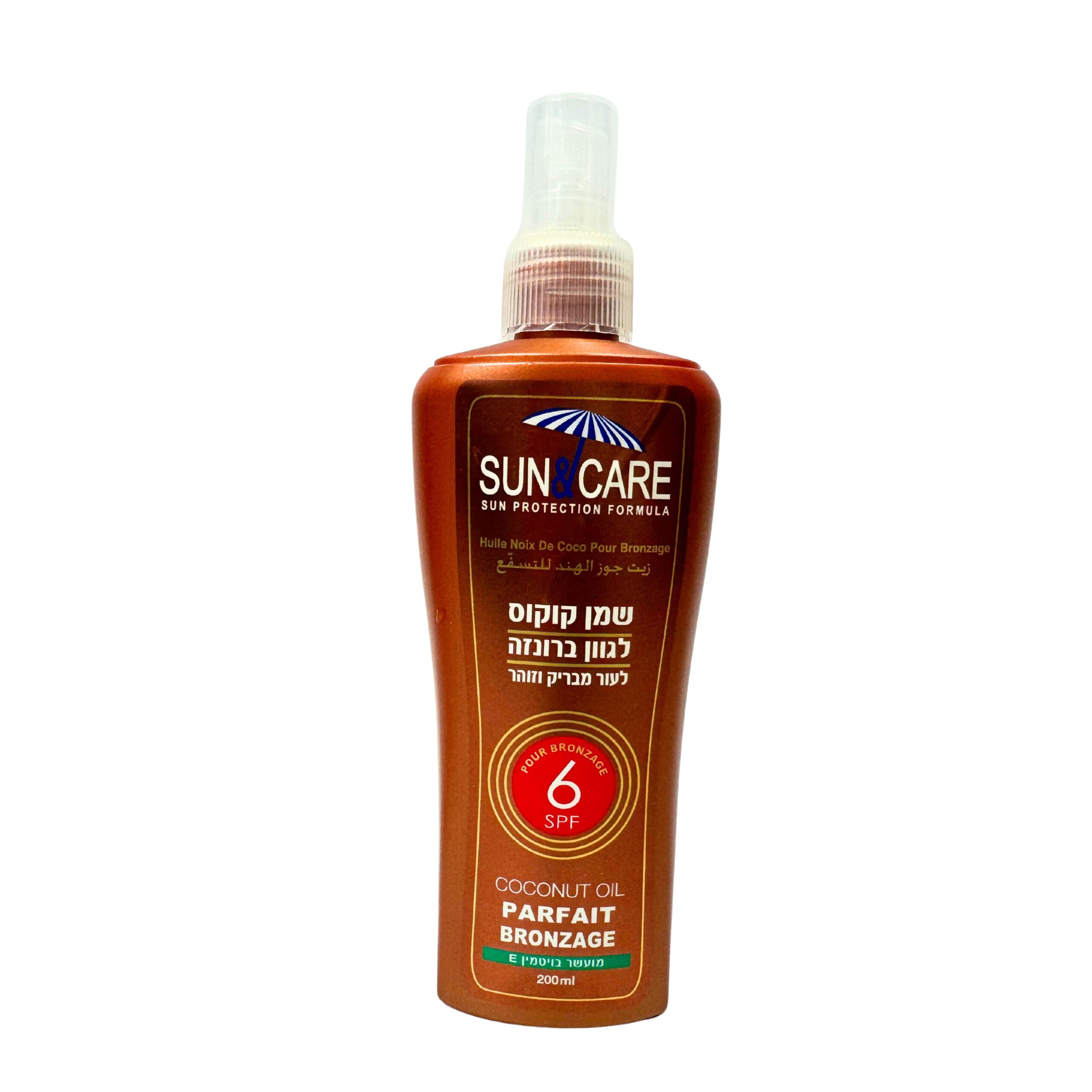 סאן אנד קר שמן קוקוס לשיזוף לגוף גוון ברונזה SUN & CARE SPF8 200ML