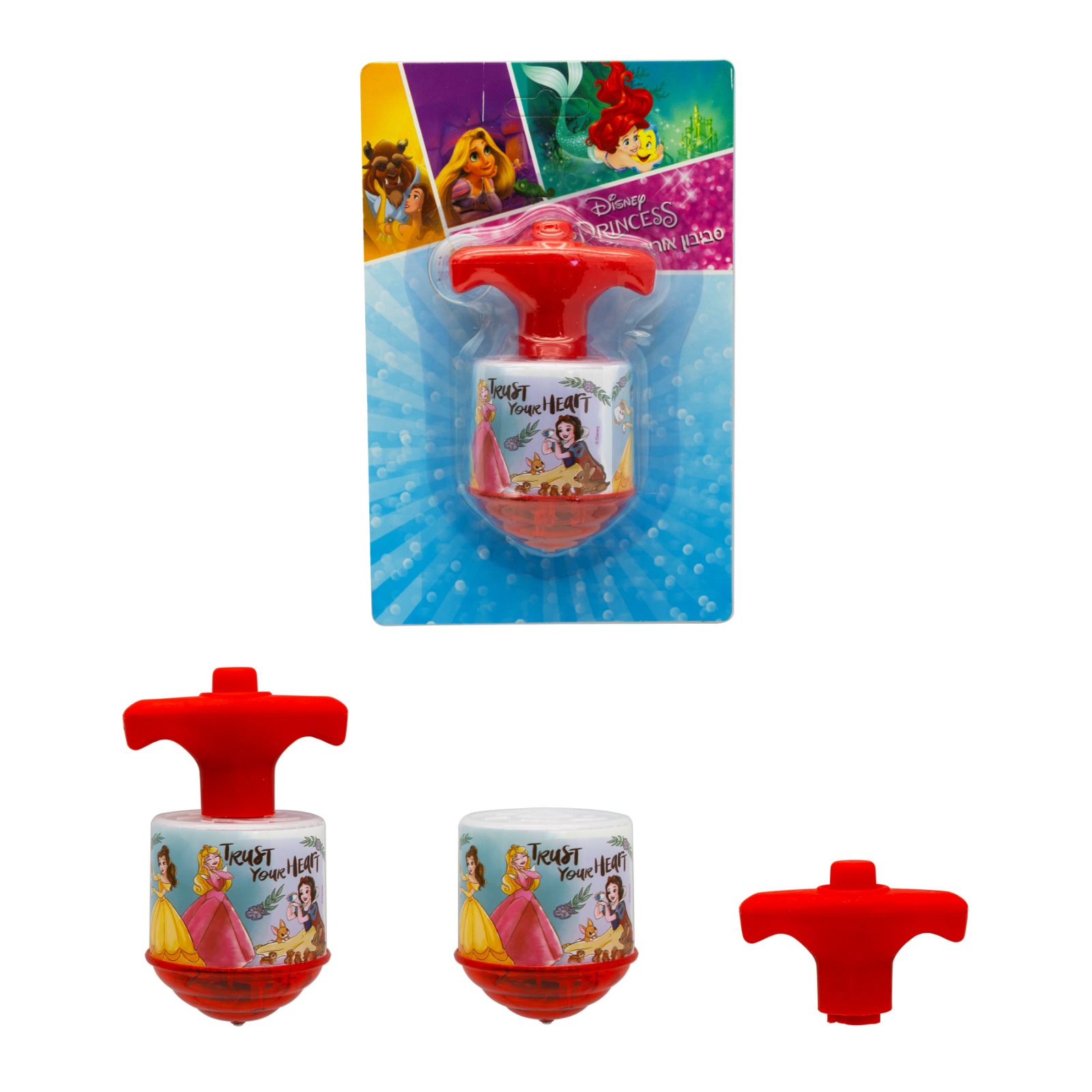 על גבי הסביבון מופיעות הנסיכות האהובות: בל, סינדרלה, אריאל ורפונזל – כולן יחד בחגיגה צבעונית אחת!