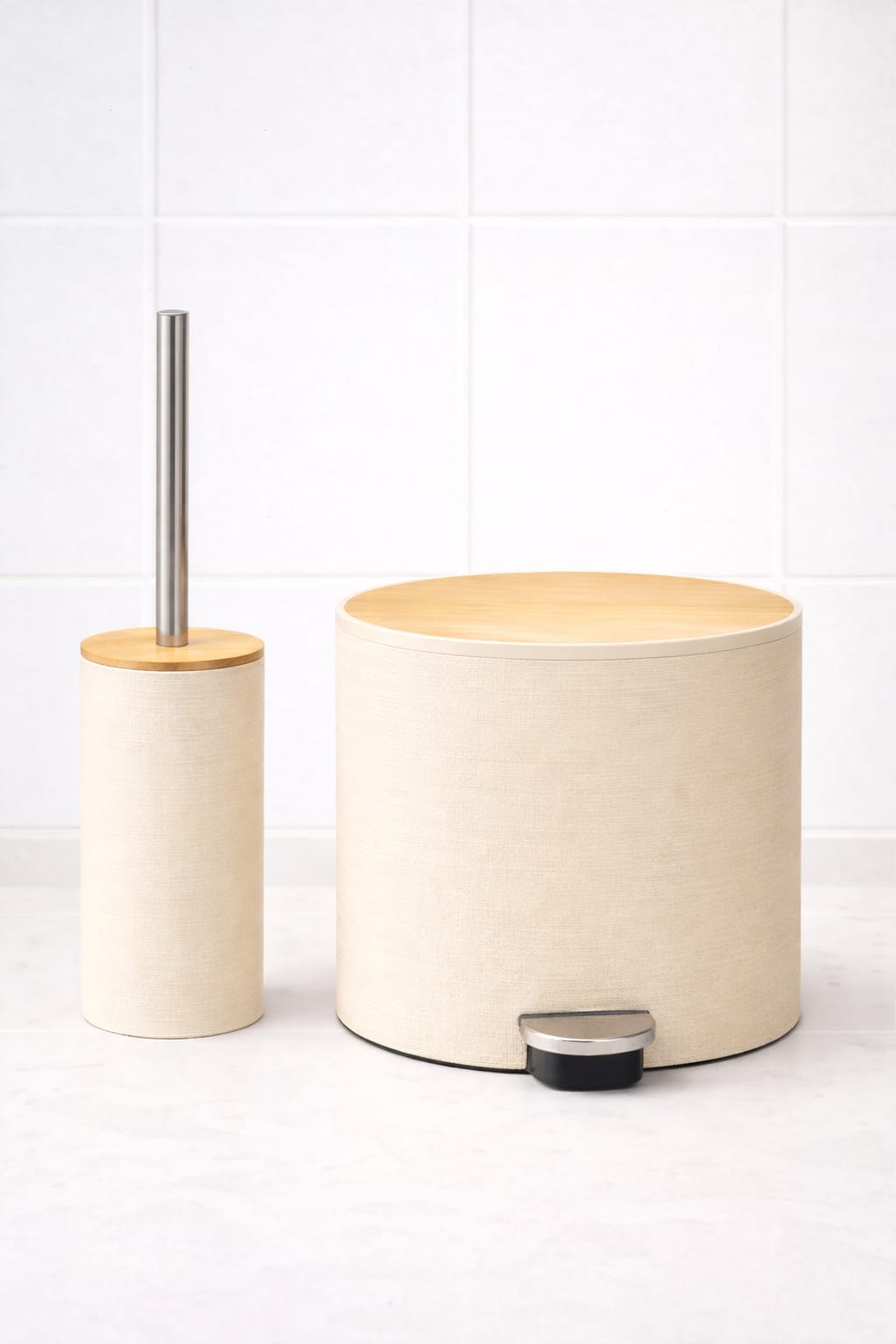 סט מברשת אסלה עם פח בעיצוב טבעי ואלגנטי – שילוב מושלם של נוחות, היגיינה וסטייל.