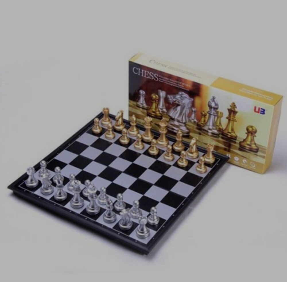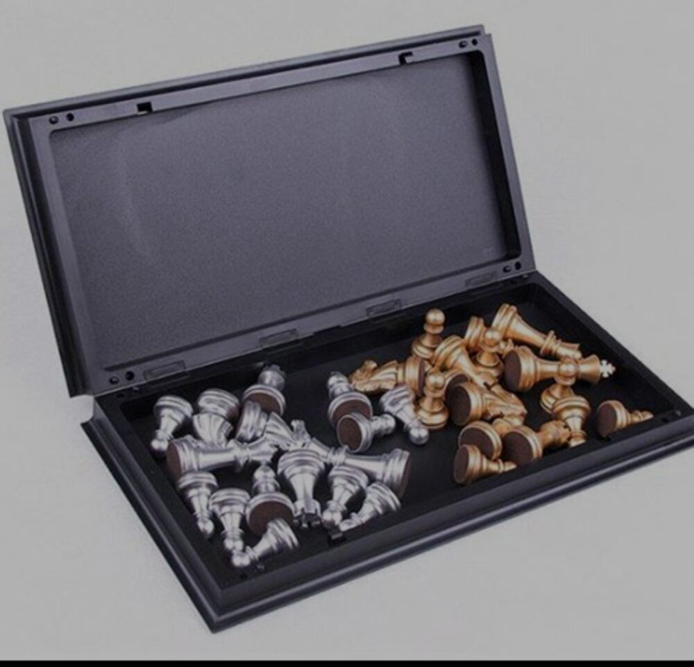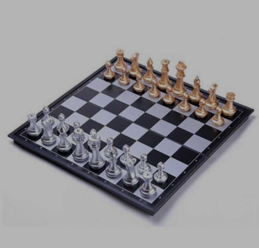 סט שחמט דלוקס – לוח קלאסי עם כלי מתכת בצבעי זהב וכסף מגנטי בינוני