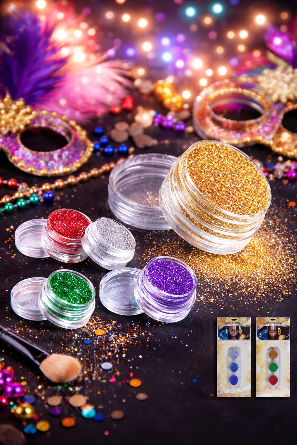 הסט כולל נצנצים איכותיים במגוון צבעים מרהיבים, בעלי ברק עשיר ונראות בולטת במיוחד – מושלם לפורים, מסיבות, הופעות, פסטיבלים, ימי הולדת ואירועי קונספט.
