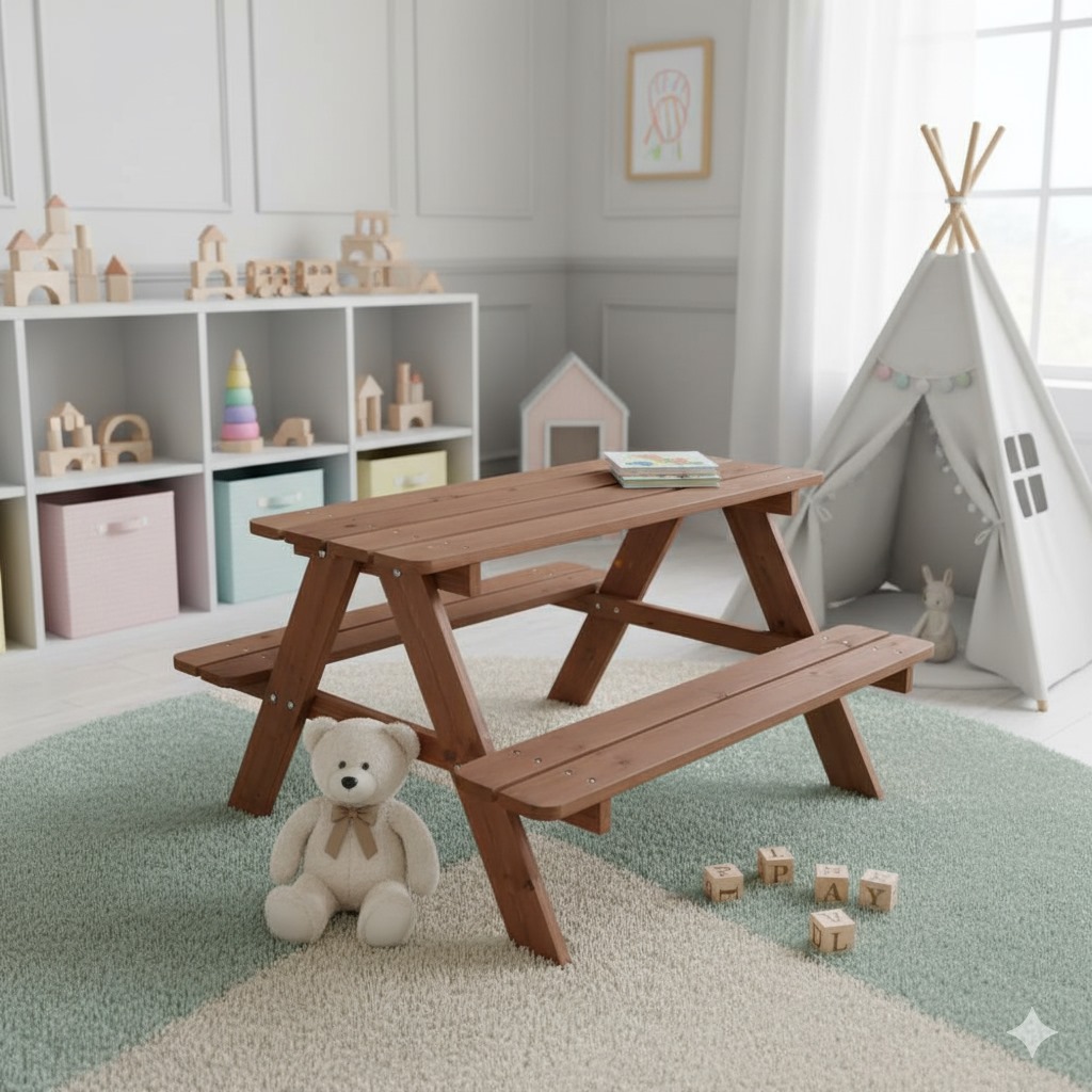 ספסל פיקניק מעץ איכותי שעוצב במיוחד עבור הילדים, מתאים לפעילויות בחוץ, פיקניקים ומשחקים בטבע. נייד, עמיד ובטוח לשימוש, משדרג כל חווית חוץ ומספק מקום מושלם ליצירה וכיף עם חברים ומשפחה.