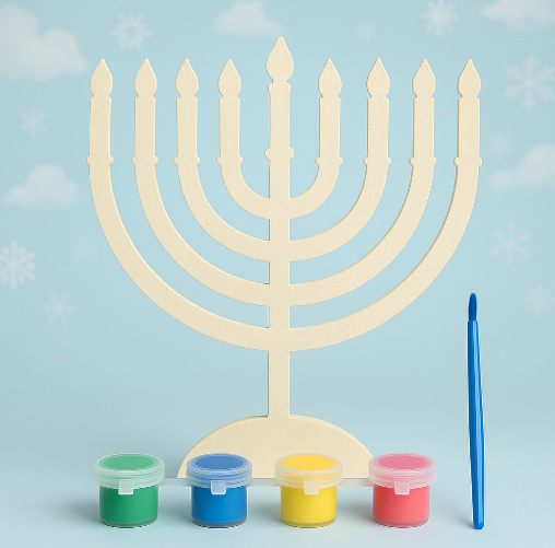 ערכת יצירה לחנוכה הכוללת חנוכייה מעץ טבעי שניתן לצבוע בעצמך!