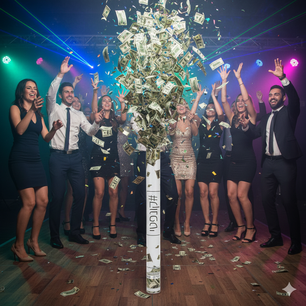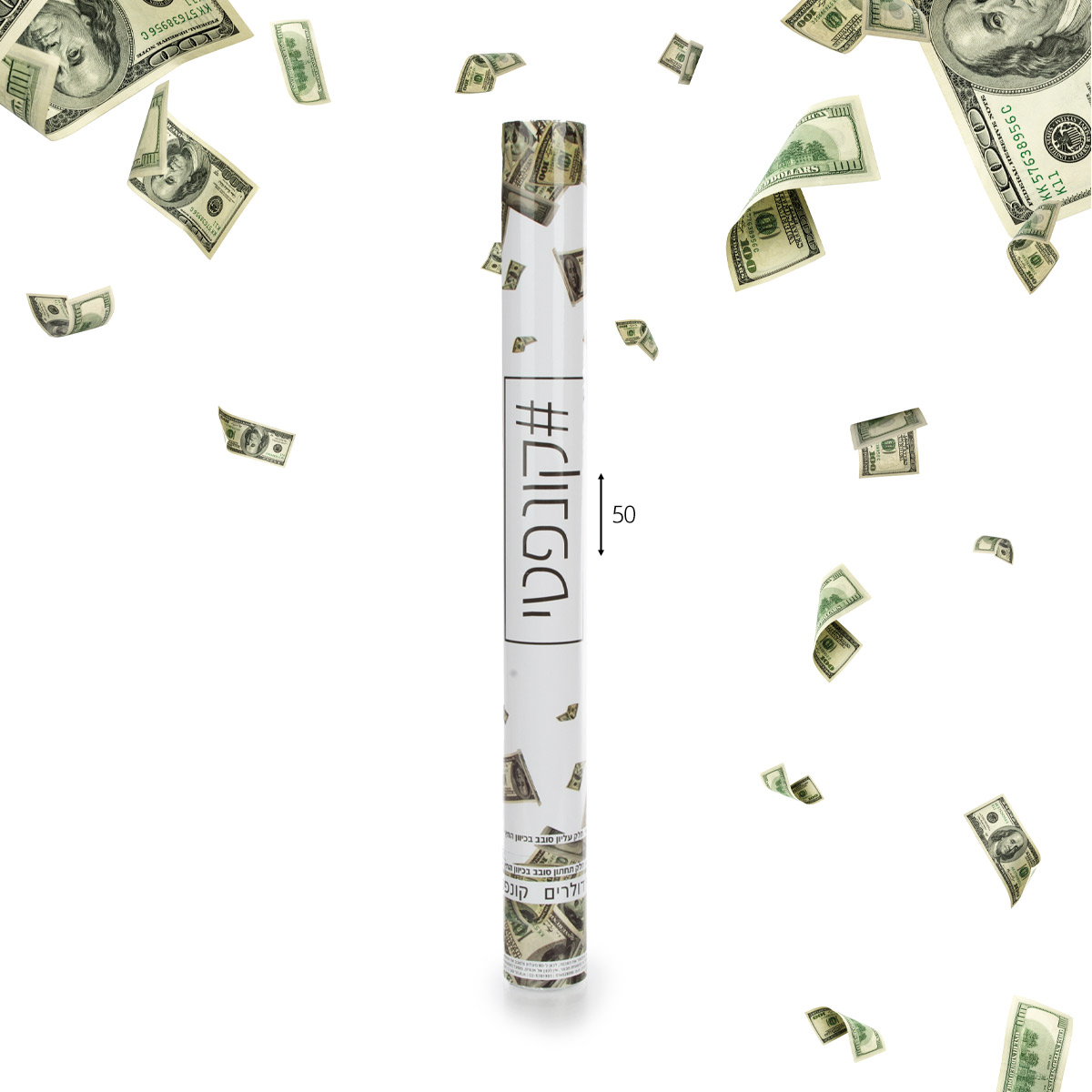 קונפטי דולרים באורך 50 ס"מ לתלייה, יוצר אווירה יוקרתית, מצחיקה וחגיגית לאירועים ומסיבות קונספט.