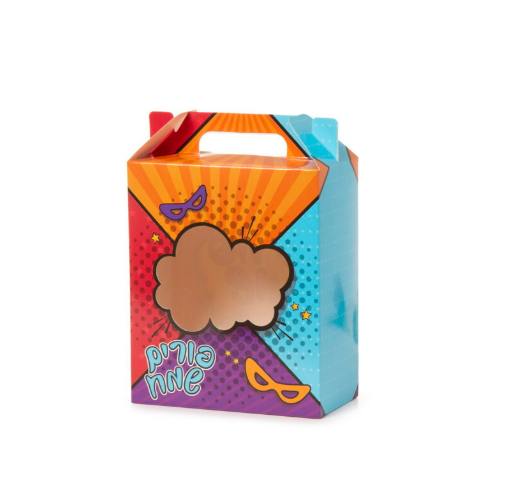קופסאות קרטון חלון 18/15/8 ס"מ פורים שמח- דגם קומיקס