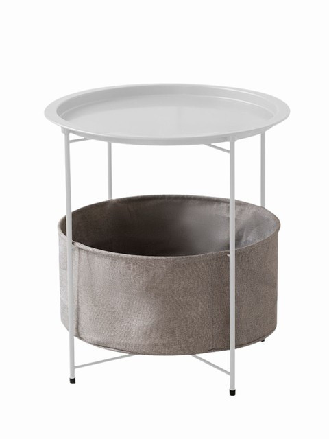 שולחן צד עגול ממתכת עם תא אחסון בד – לבן