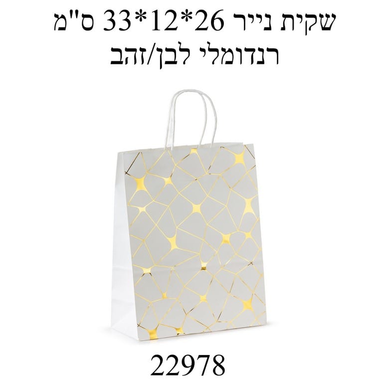 שקית נייר איכותית ועמידה 33*12*26 ס"מ דגם לבן זהב