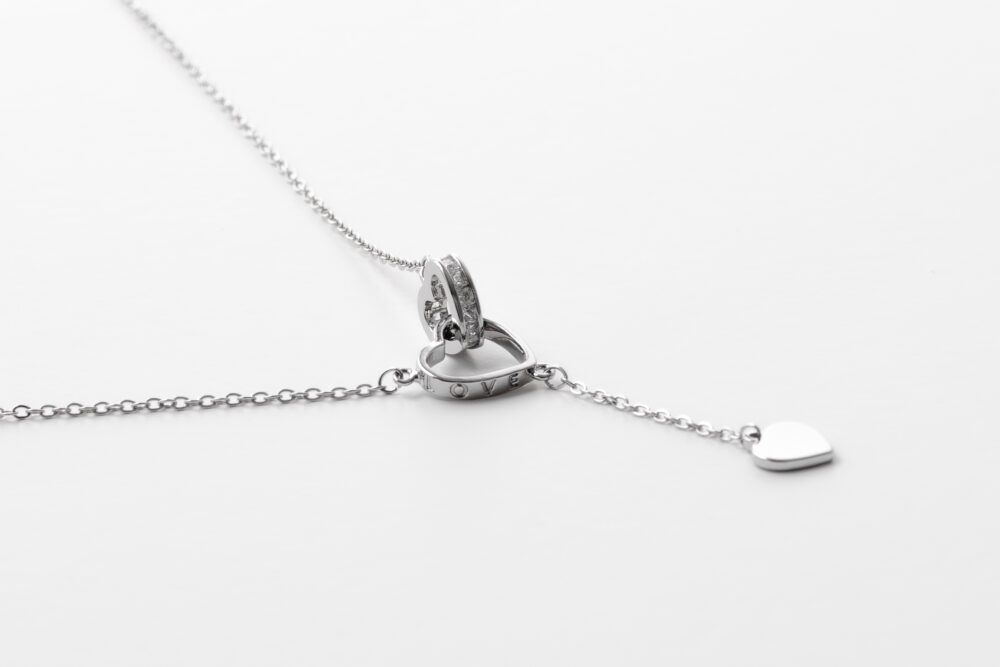 שרשרת ציפוי כסף תליון לב LOVE עם אבנים